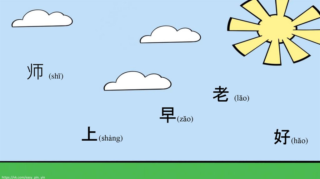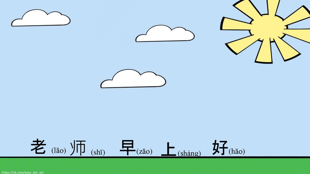 老 (lăo) 师 (shī) 早(zăo) 上(shàng) 好(hăo)https://vk.com/easy_pin_yin