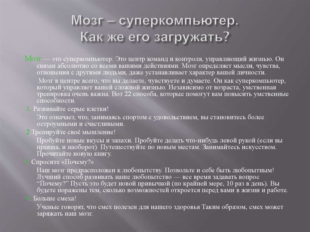 заряжать наш мозг.