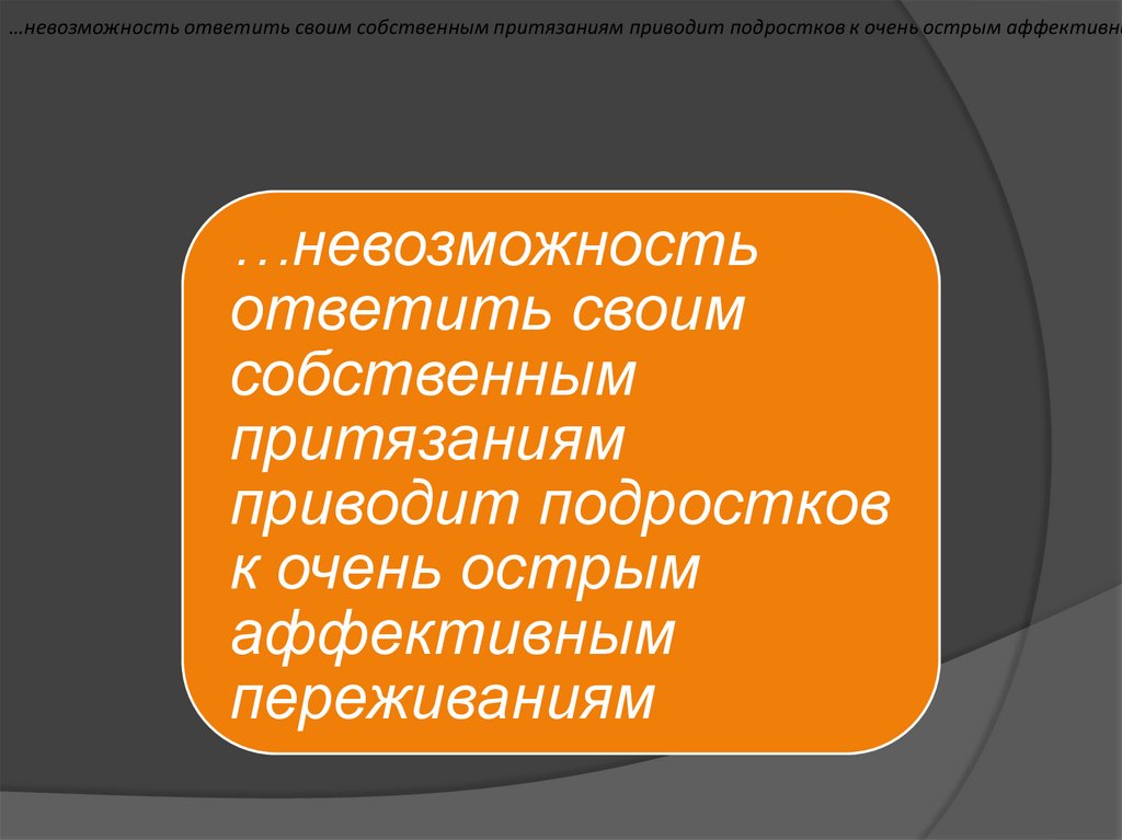 …невозможность ответить своим собственным притязаниям приводит подростков к очень острым аффективны…невозможность