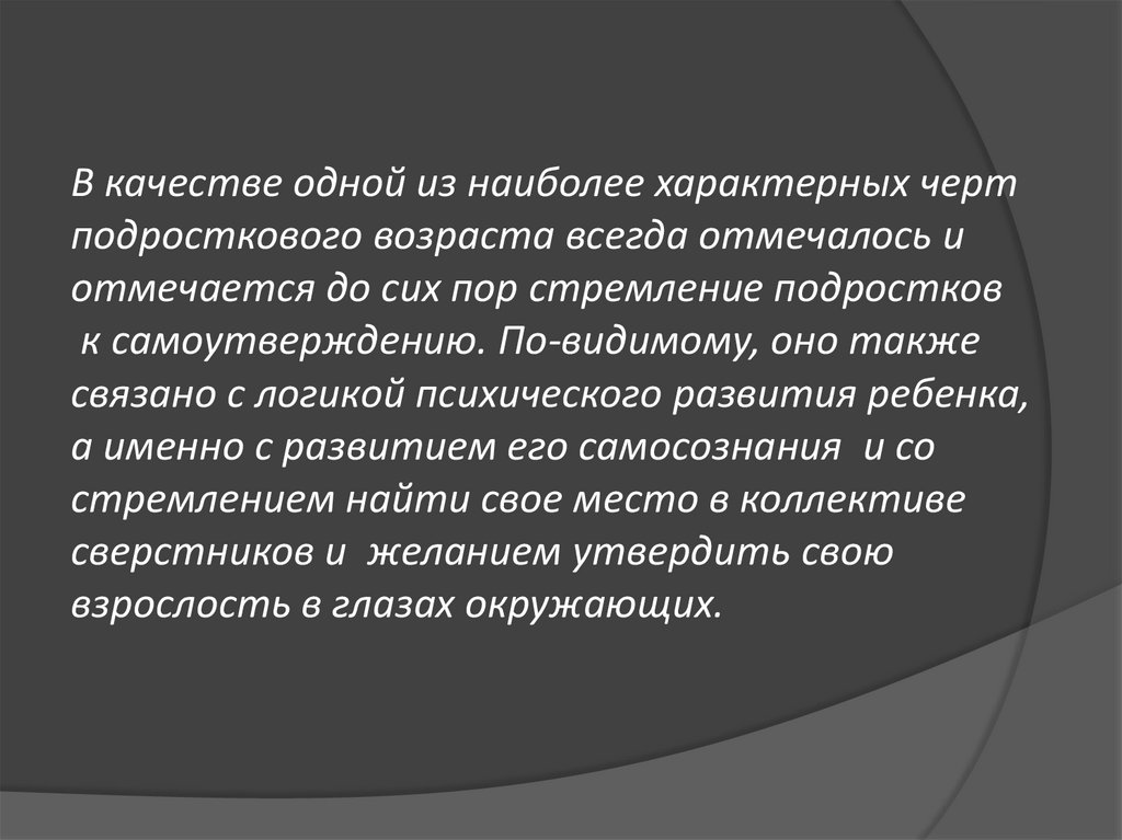 В качестве одной из наиболее характерных чертподросткового возраста всегда отмечалось и