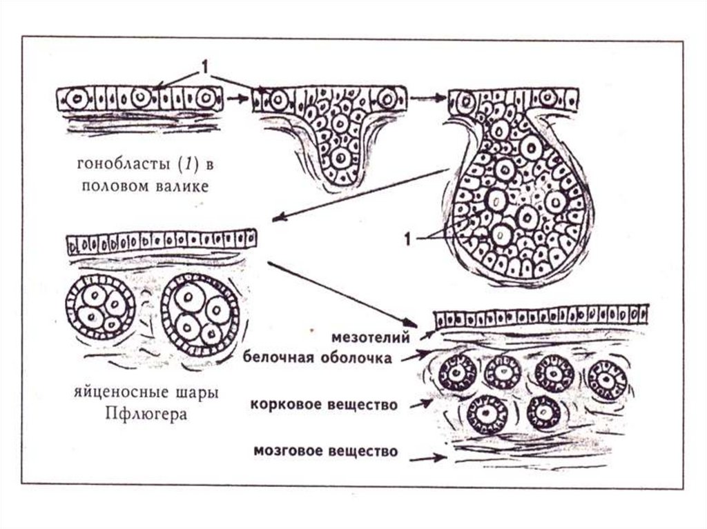 ЭМБРИОГЕНЕЗ ПОЛОВОЙ СИСТЕМЫЭпителий половых валиков, содержащий гоноциты, врастает в ткань