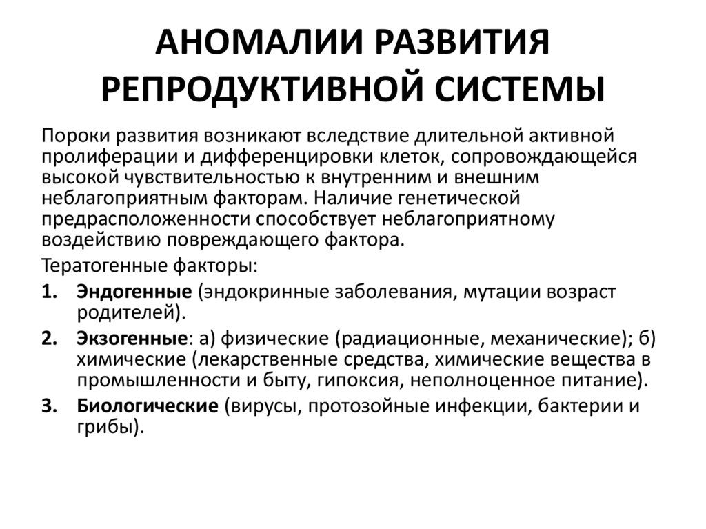 и т.д.), прием медикаментов, блокирующих биосинтез половых