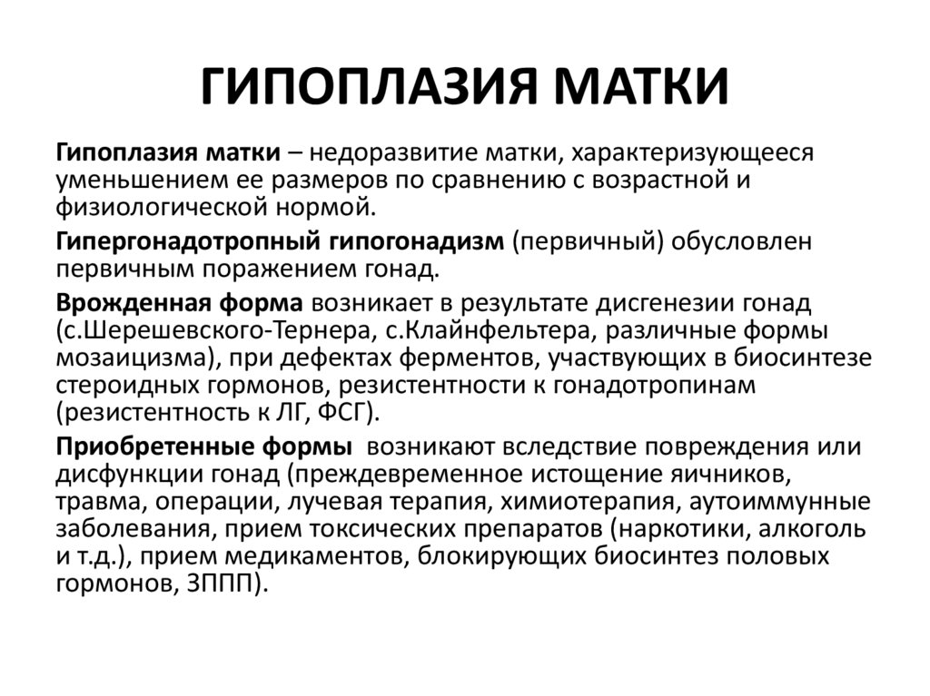 ГИПОПЛАЗИЯ МАТКИГипоплазия матки – недоразвитие матки, характеризующееся