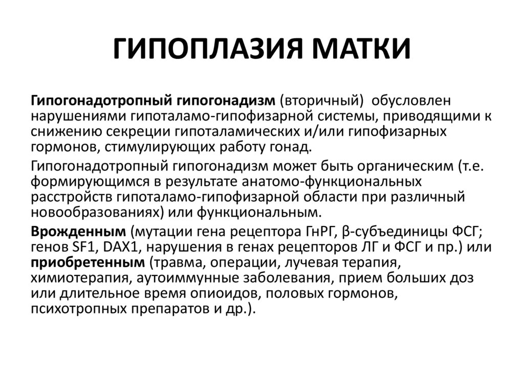 ГИПОПЛАЗИЯ МАТКИГипогонадотропный гипогонадизм (вторичный) обусловлен