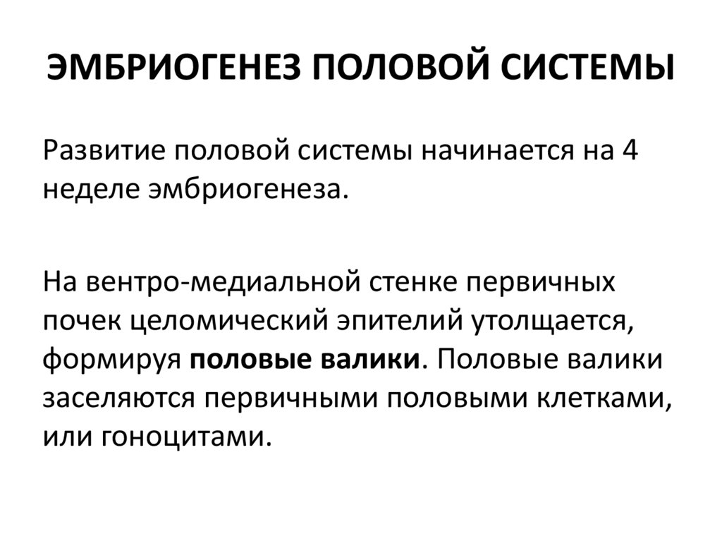 ЭМБРИОГЕНЕЗ ПОЛОВОЙ СИСТЕМЫРазвитие половой системы начинается на 4