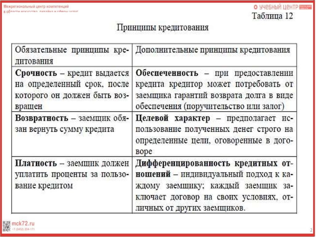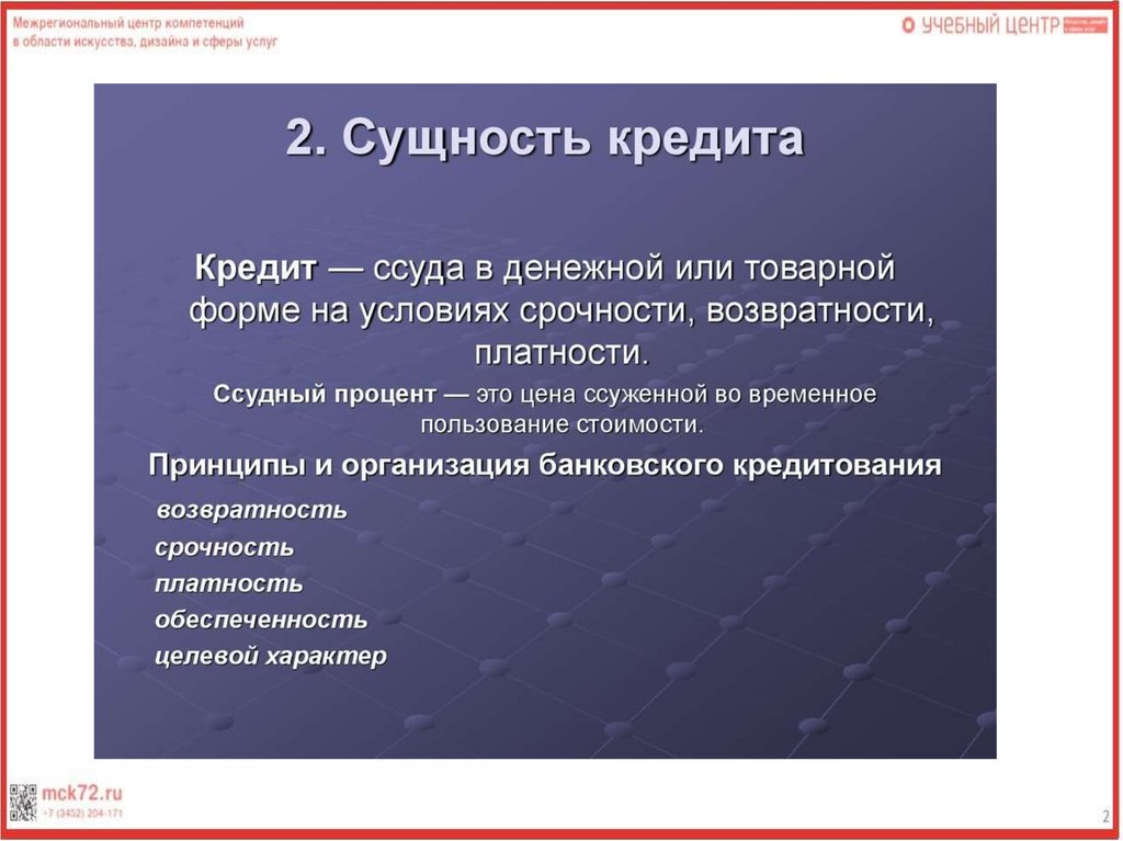 кредита связана с принципом платности или возмездности кредитных отношений.