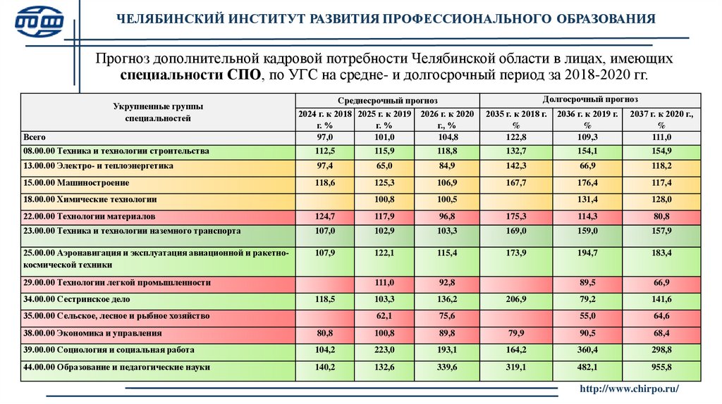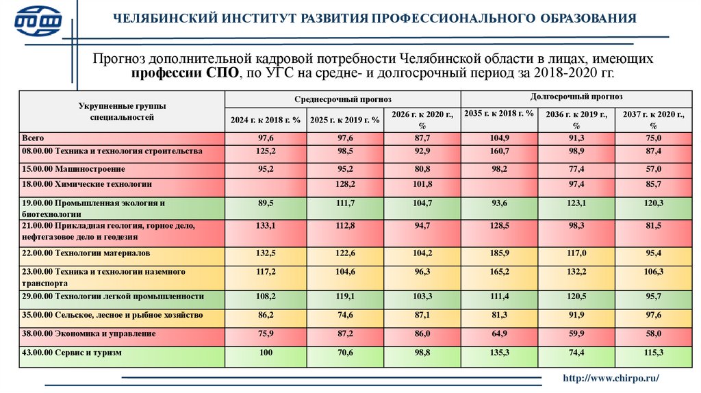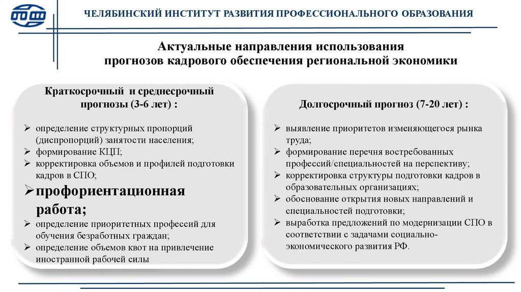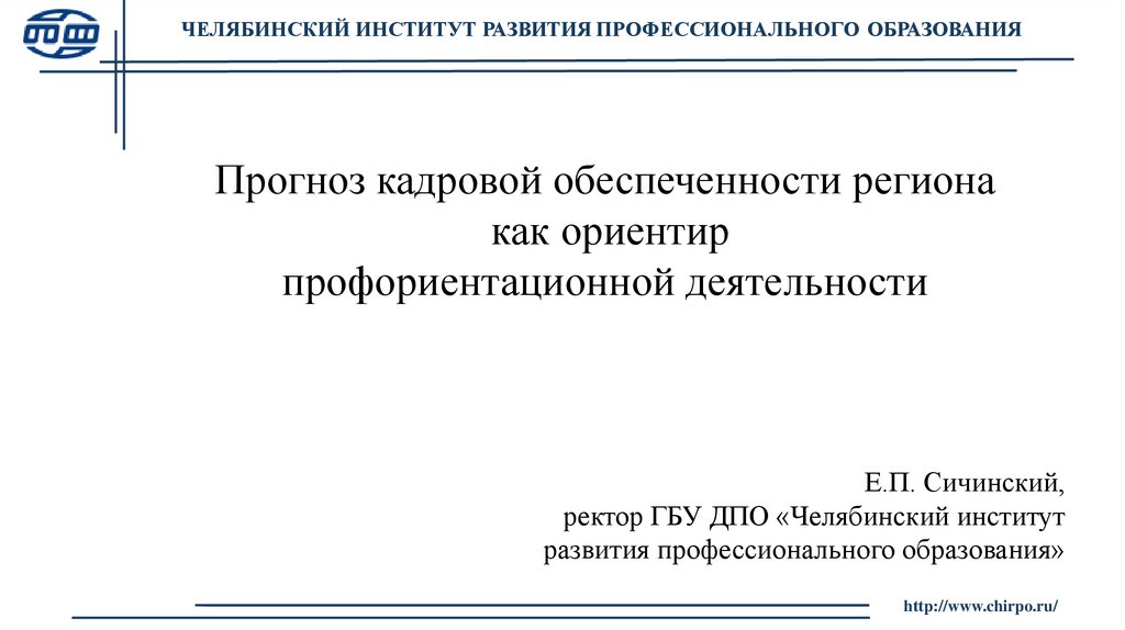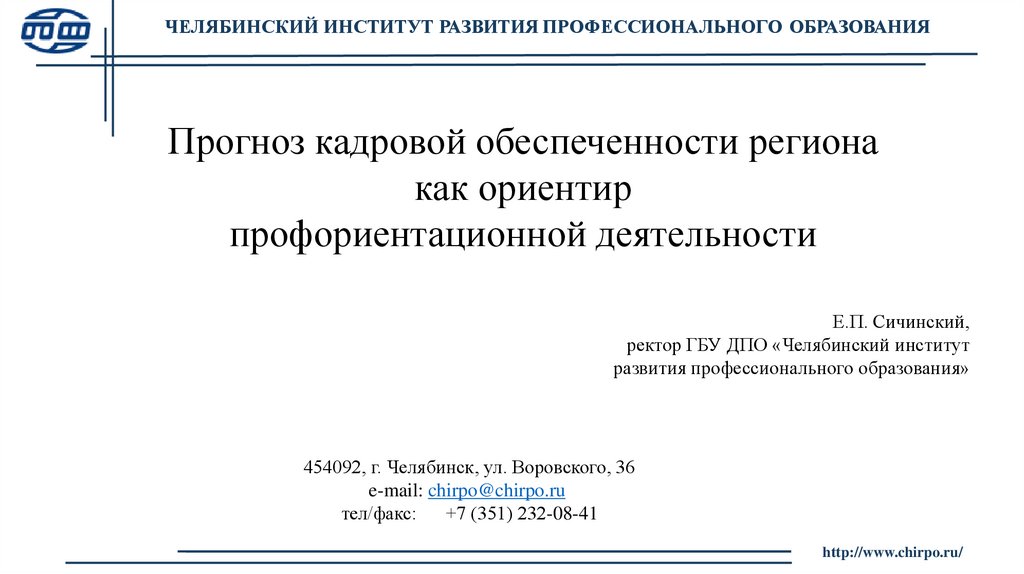 ЧЕЛЯБИНСКИЙ ИНСТИТУТ РАЗВИТИЯ ПРОФЕССИОНАЛЬНОГО ОБРАЗОВАНИЯПрогноз кадровой обеспеченности региона