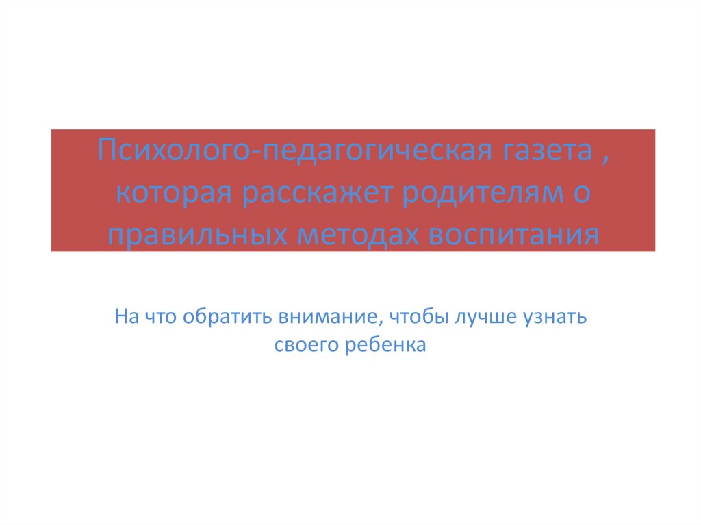Психолого-педагогическая газета , которая расскажет родителям о правильных методах воспитания