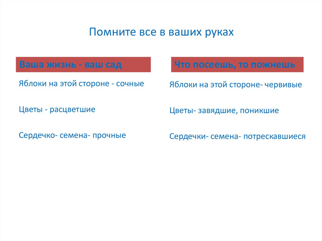 Помните все в ваших рукахВаша жизнь - ваш сад