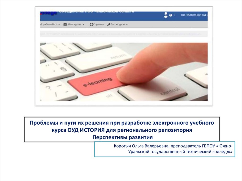 Проблемы и пути их решения при разработке электронного учебногокурса ОУД ИСТОРИЯ для регионального репозитория