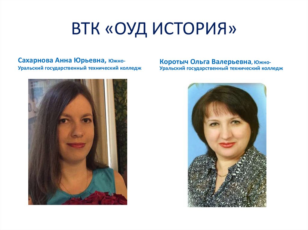 ВТК «ОУД ИСТОРИЯ»Сахарнова Анна Юрьевна, ЮжноУральский государственный технический колледж