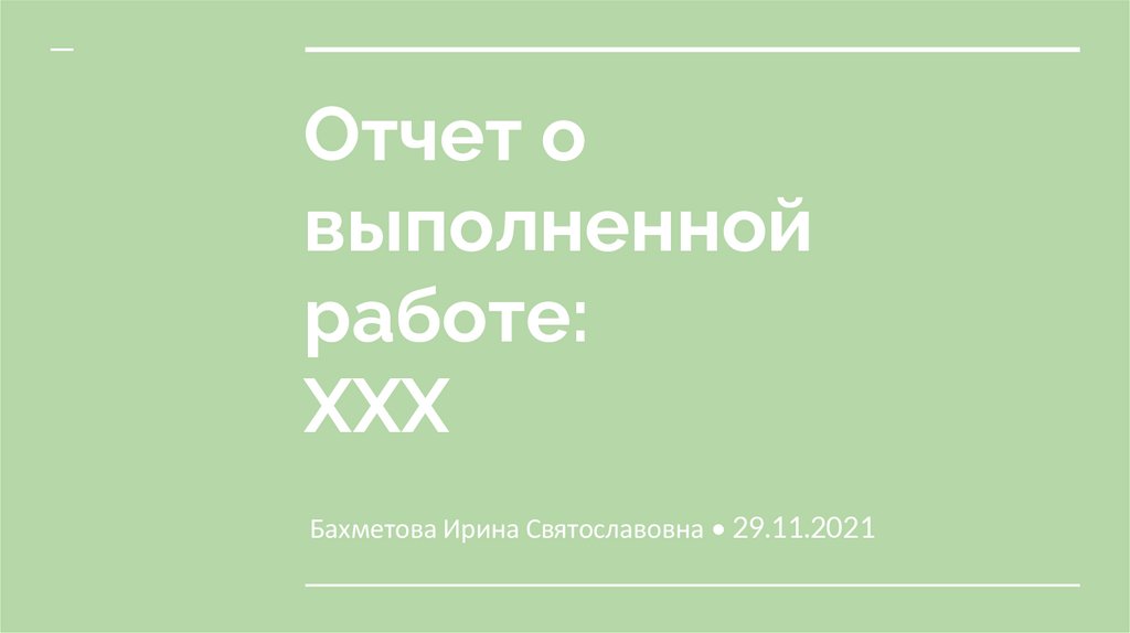 Шаблон отчета о выполненной работе: