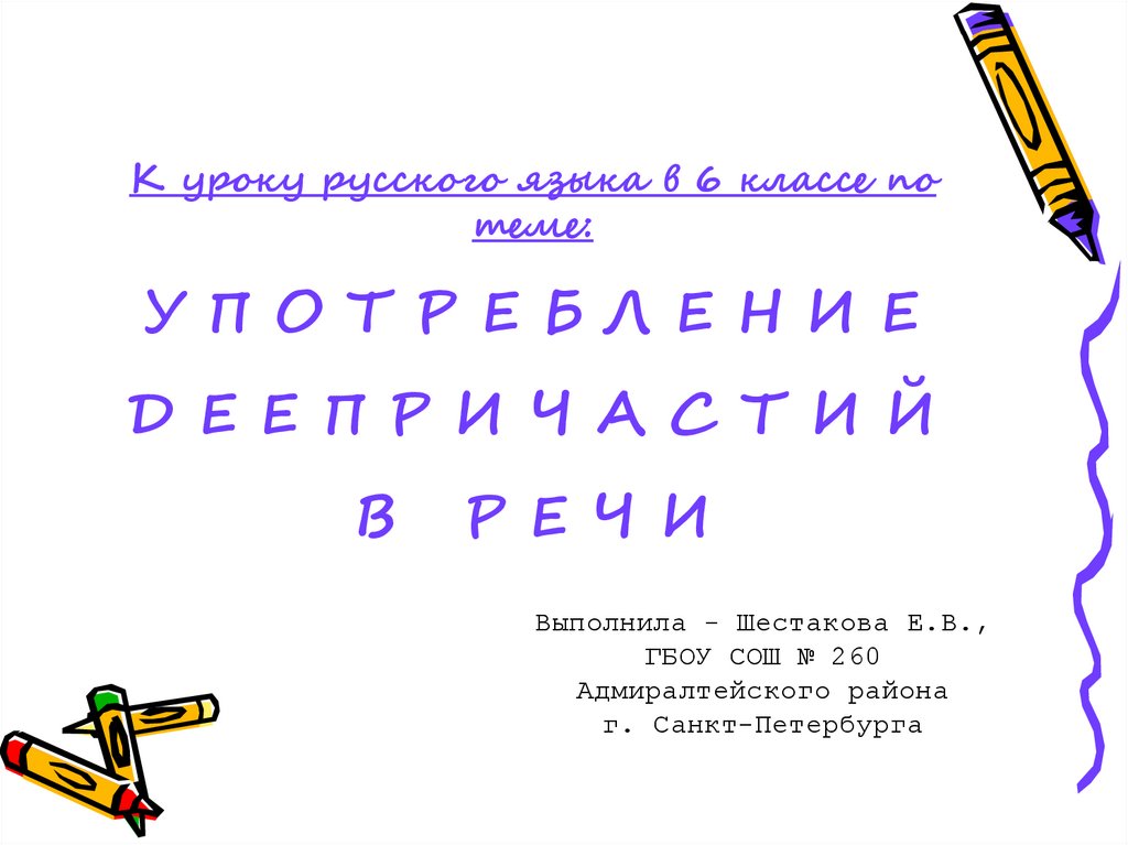 К уроку русского языка в 6 классе потеме: