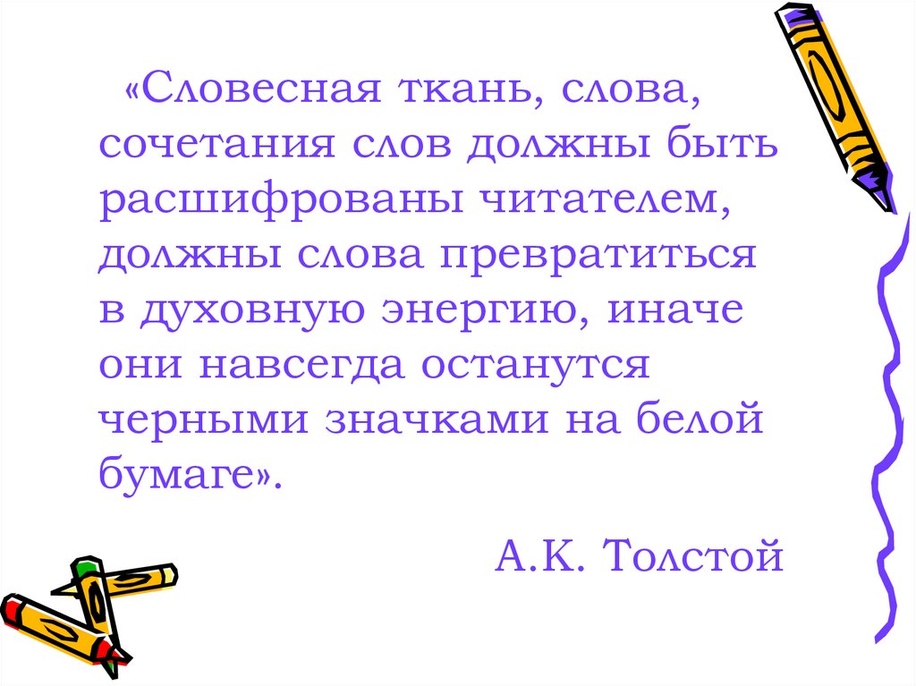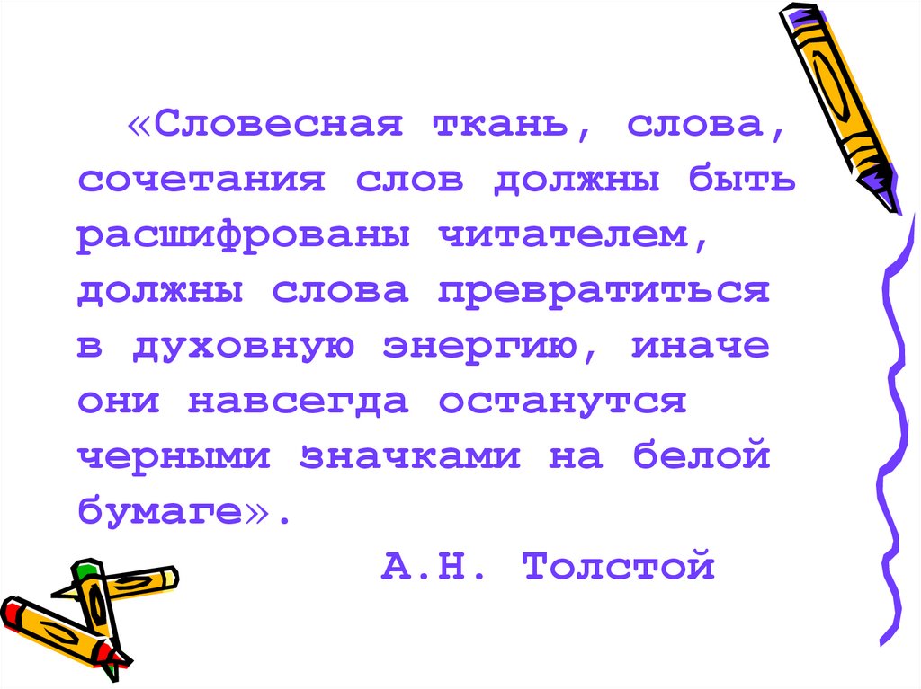 «Словесная ткань, слова,сочетания слов должны быть