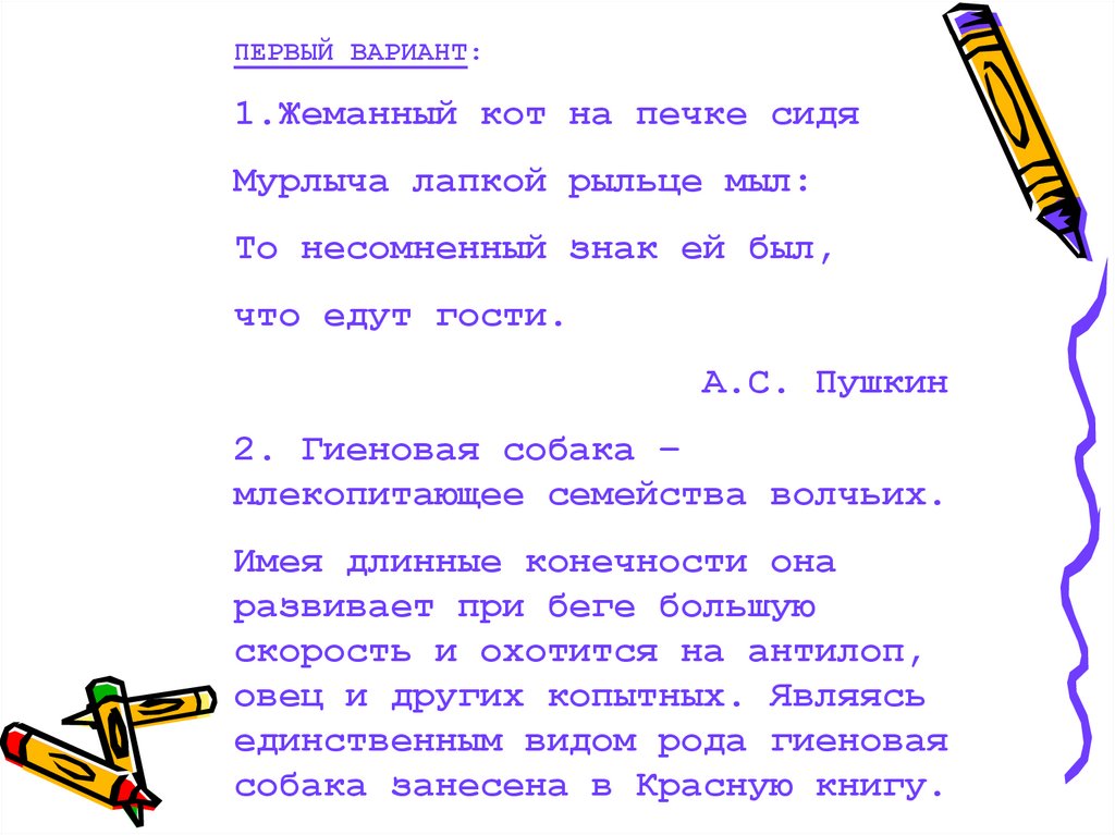ПЕРВЫЙ ВАРИАНТ:1.Жеманный кот на печке сидя