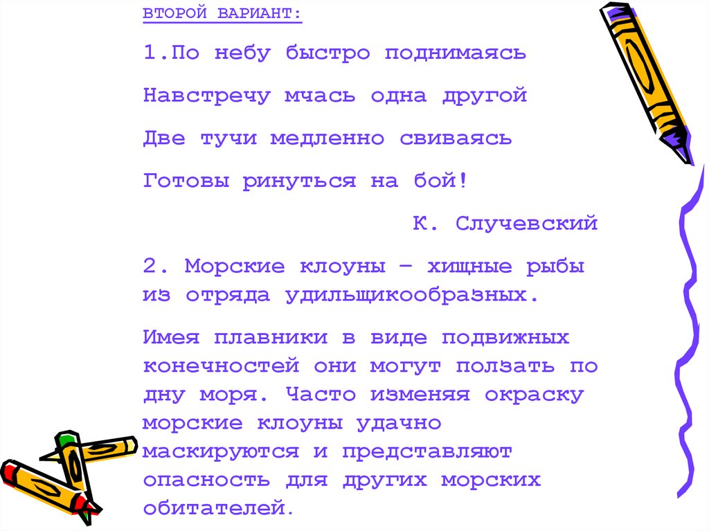 ВТОРОЙ ВАРИАНТ:1.По небу быстро поднимаясь