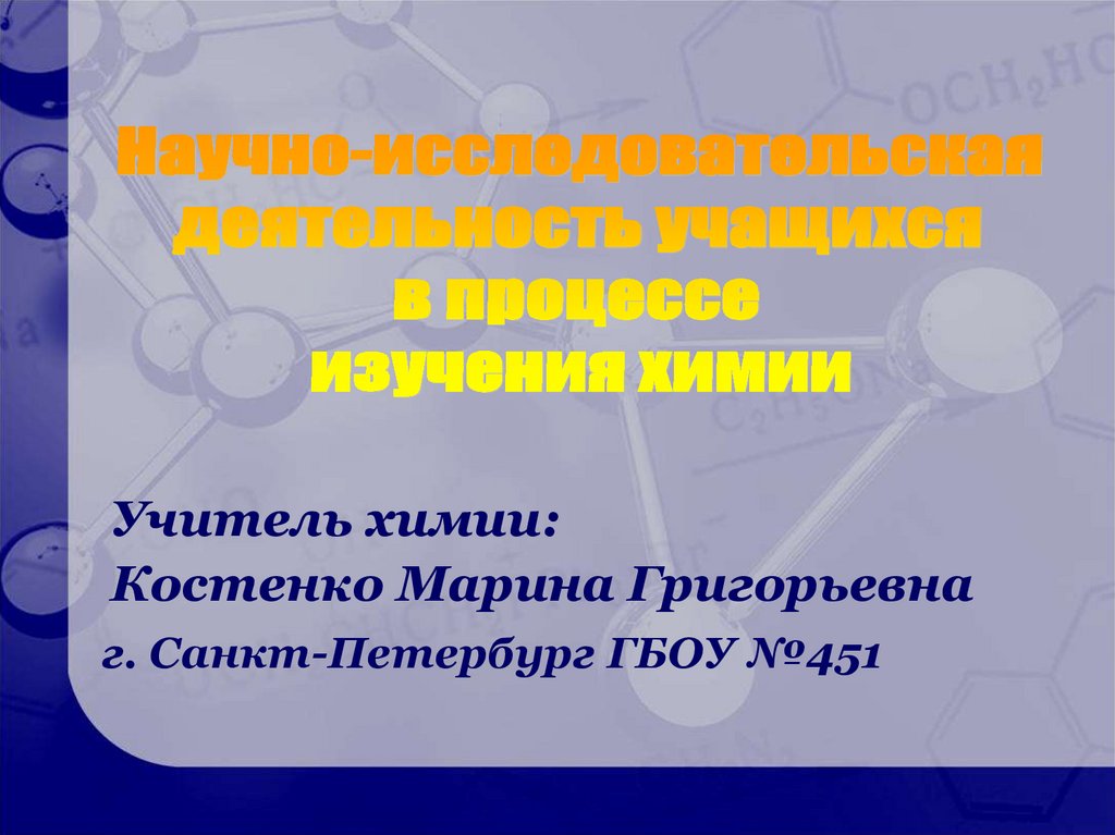 Научно-исследовательская деятельность учащихся в процессе изучения химии