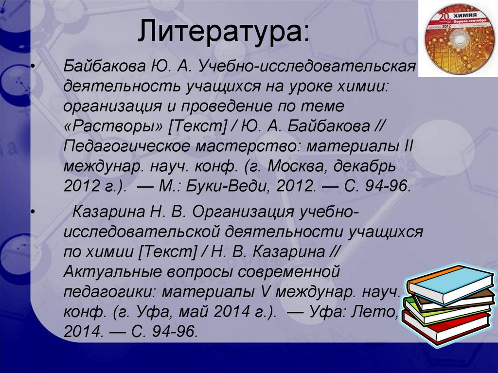 Литература:Байбакова Ю. А. Учебно-исследовательская