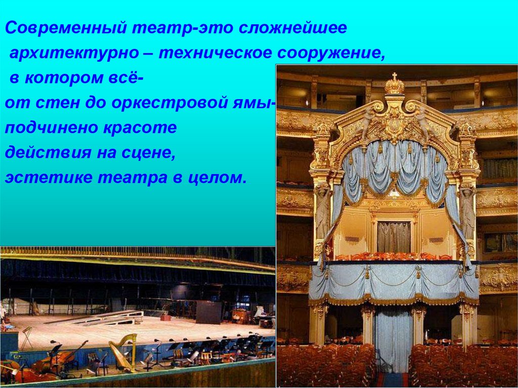 Современный театр-это сложнейшееархитектурно – техническое сооружение,