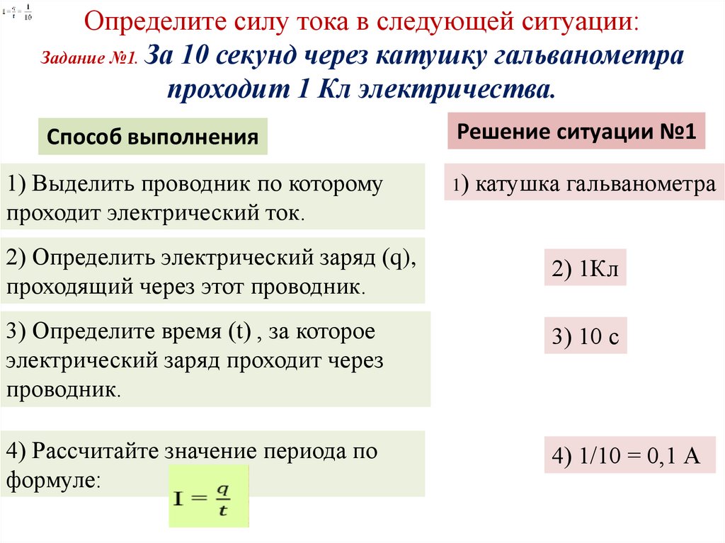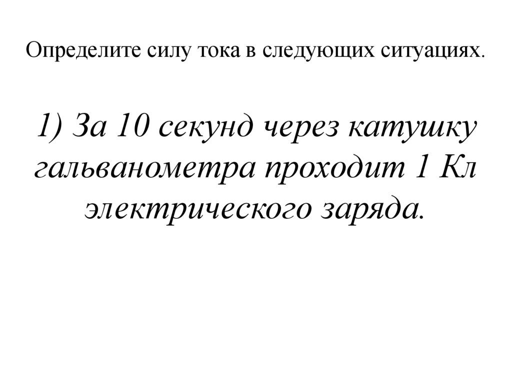 Определите силу тока в следующей ситуации:Задание №1. За 10 секунд через катушку гальванометра