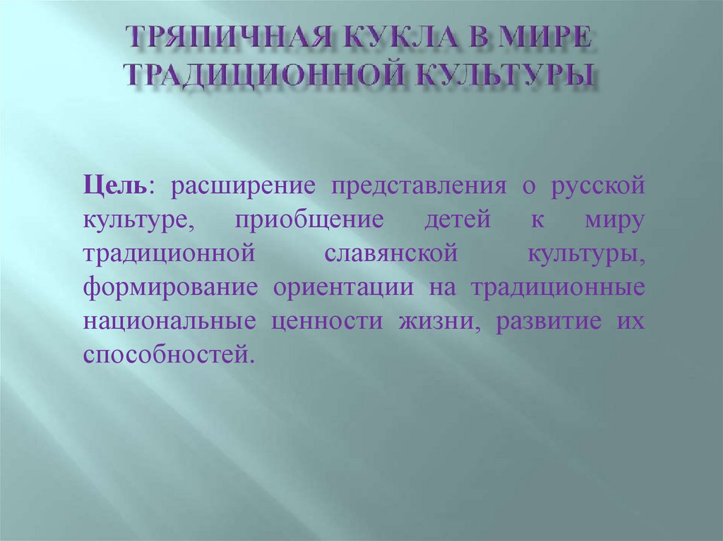 Цель: расширение представления о русскойкультуре, приобщение детей к миру