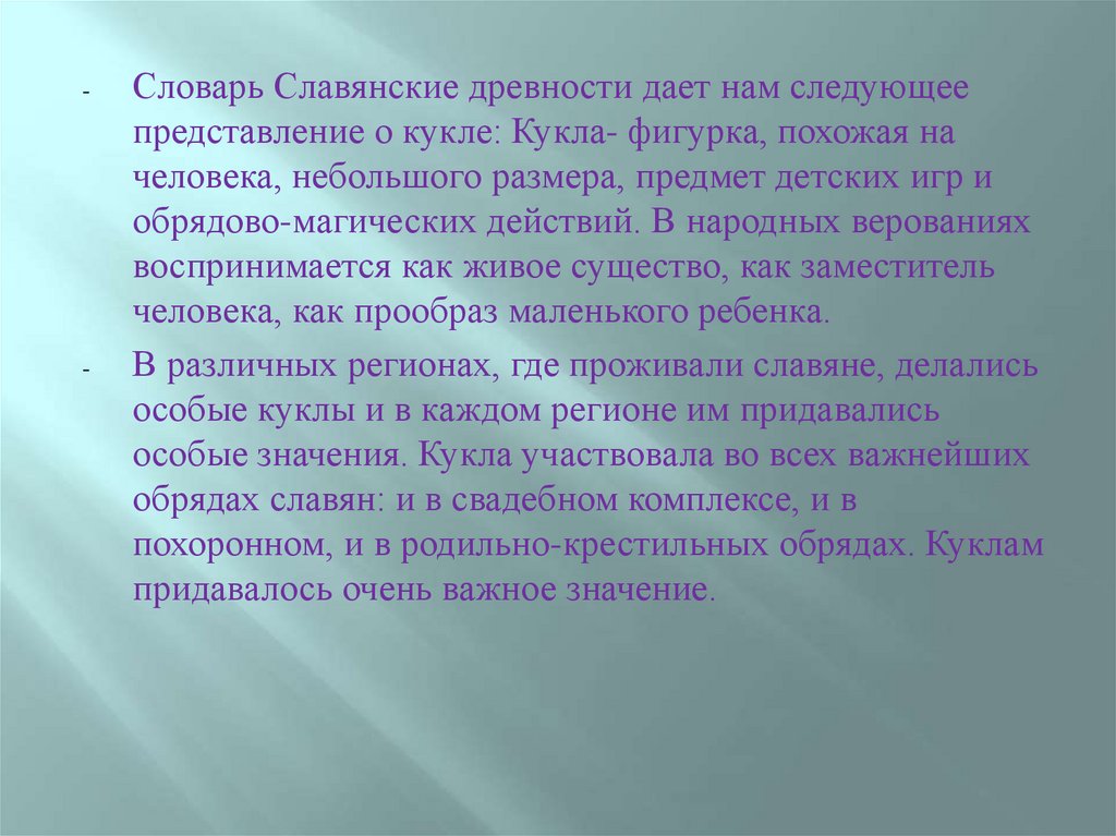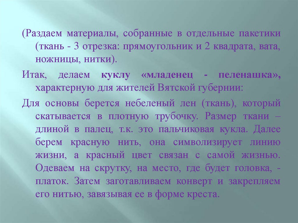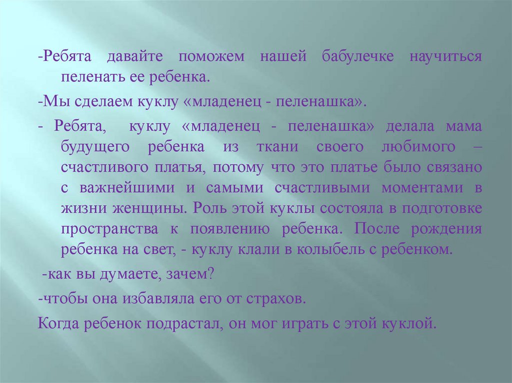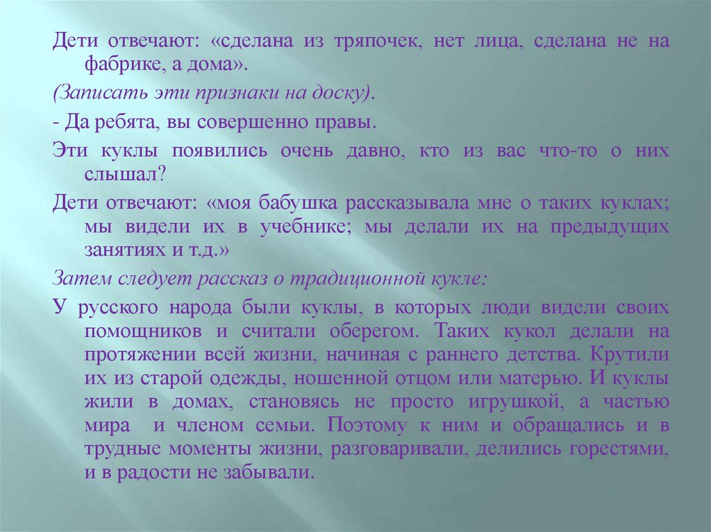 Затем следует рассказ о традиционной кукле: