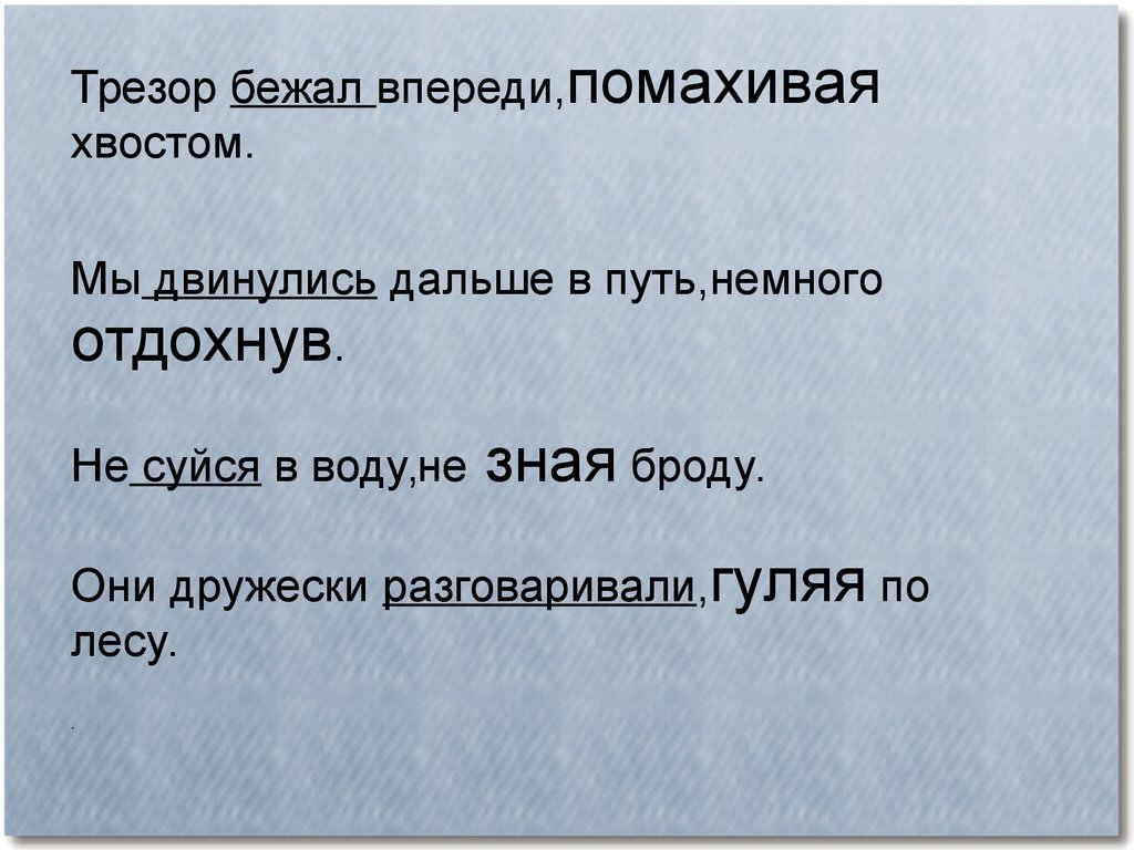 Деепричастие-это часть речиОбозначает добавочное действие к основному
