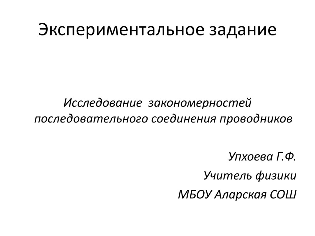 Экспериментальное задание. Иccледование закономерностей последовательного соединения проводников