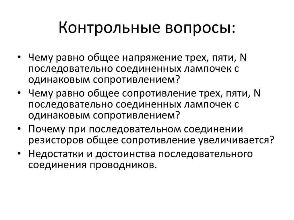 Контрольные вопросы:• Чему равно общее напряжение трех, пяти, N