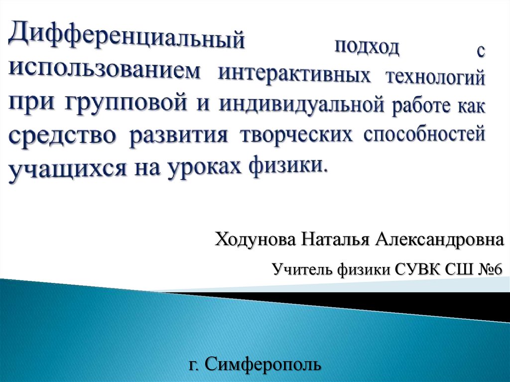 Ходунова Наталья АлександровнаУчитель физики СУВК СШ №6