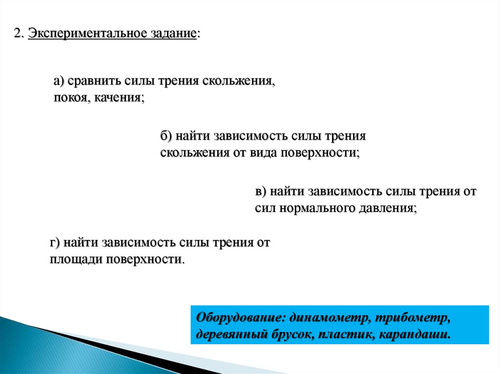 2. Экспериментальное задание:а) сравнить силы трения скольжения,