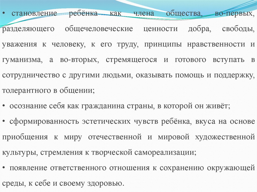 культуры, стремления к творческой самореализации;