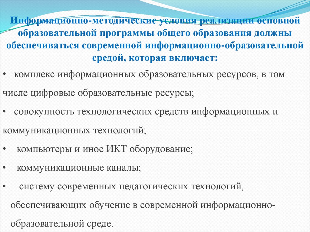Информационно-методические условия реализации основнойобразовательной программы общего образования должны