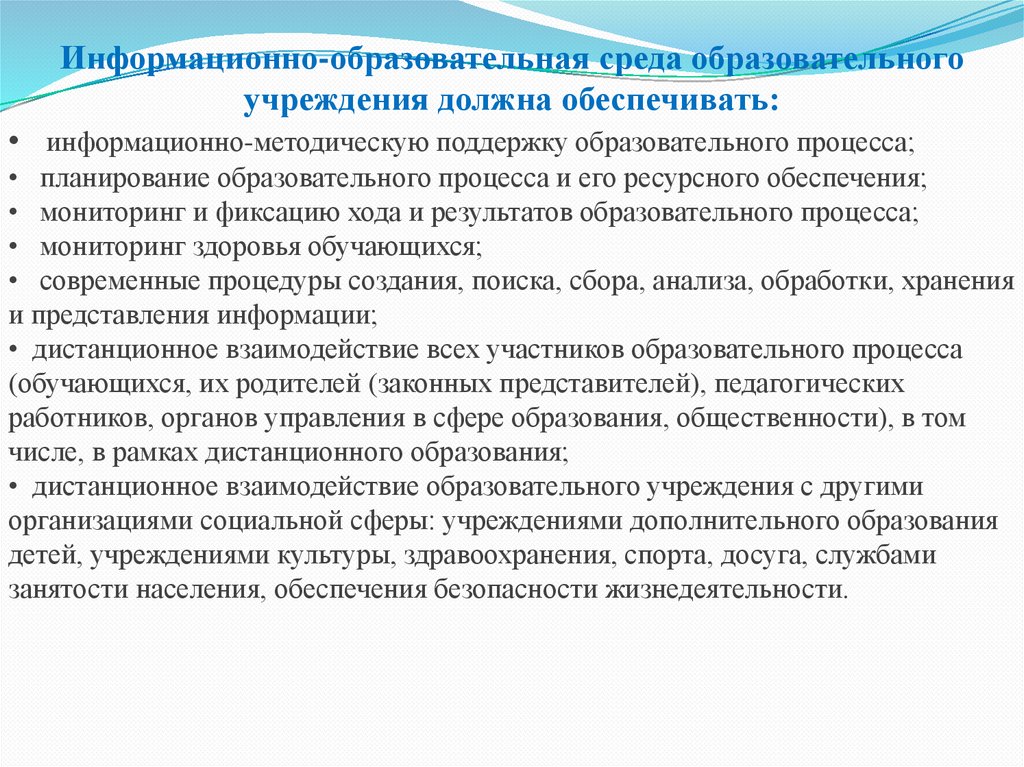Информационно-образовательная среда образовательногоучреждения должна обеспечивать: