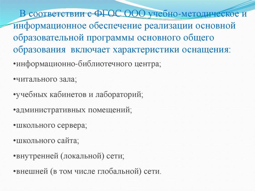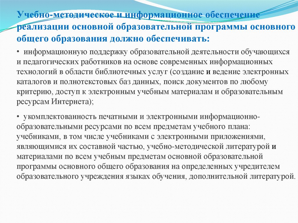 В соответствии с ФГОС ООО учебно-методическое иинформационное обеспечение реализации основной