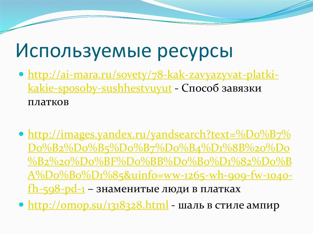 Используемые ресурсыhttp://ai-mara.ru/sovety/78-kak-zavyazyvat-platki-