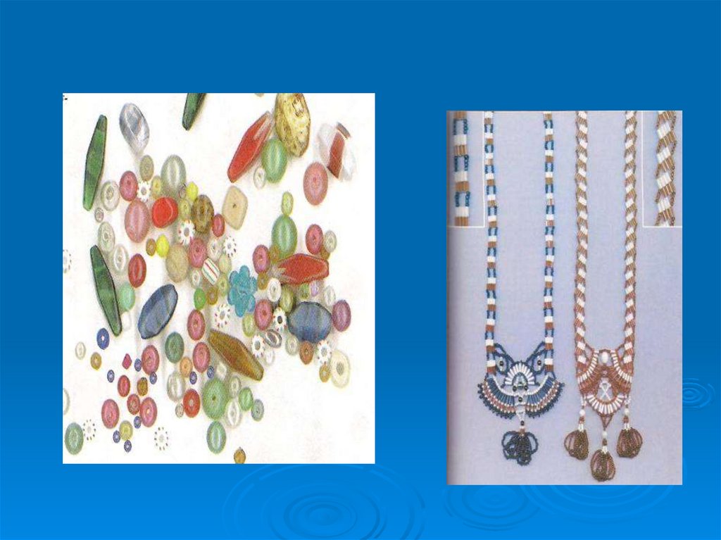 бусами, бисером, стеклярусом.