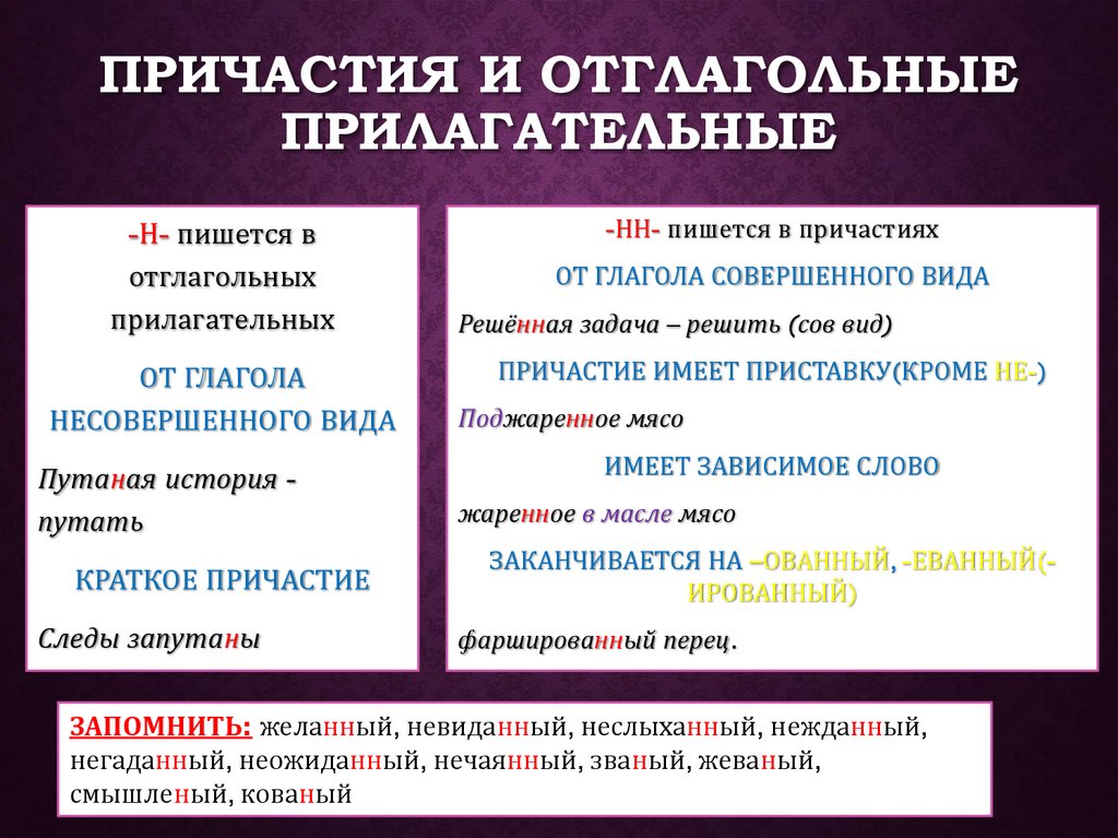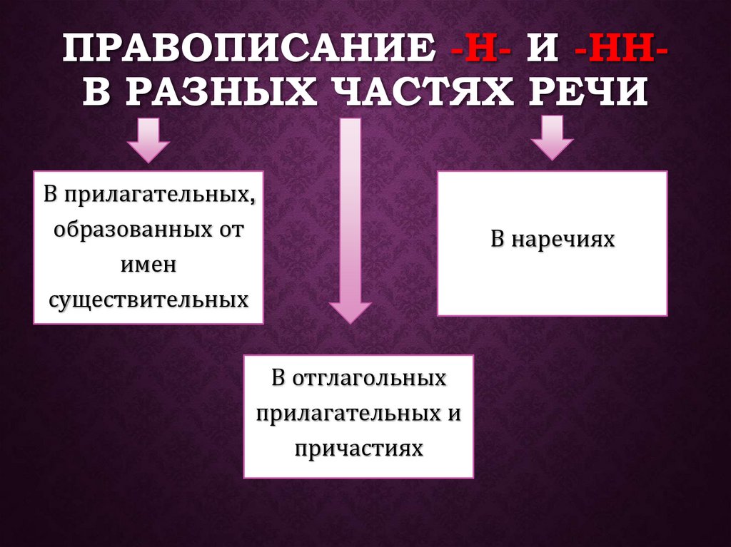 ПРАВОПИСАНИЕ -Н- И -ННВ РАЗНЫХ ЧАСТЯХ РЕЧИВ прилагательных,