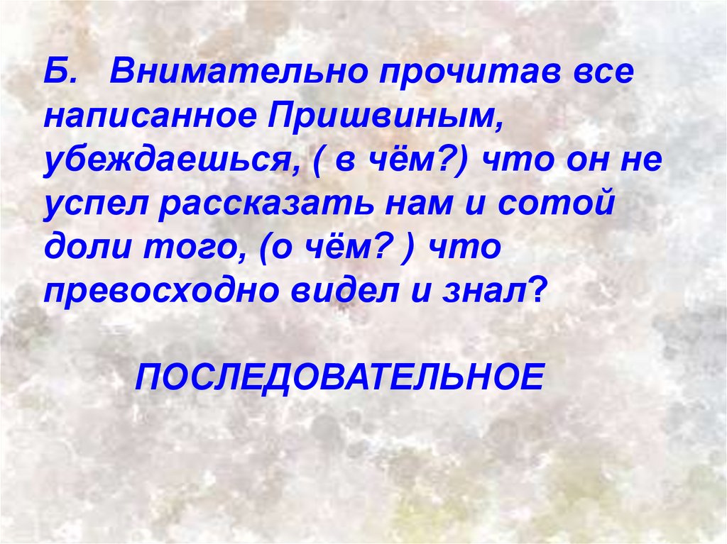 Б. Внимательно прочитав всенаписанное Пришвиным,