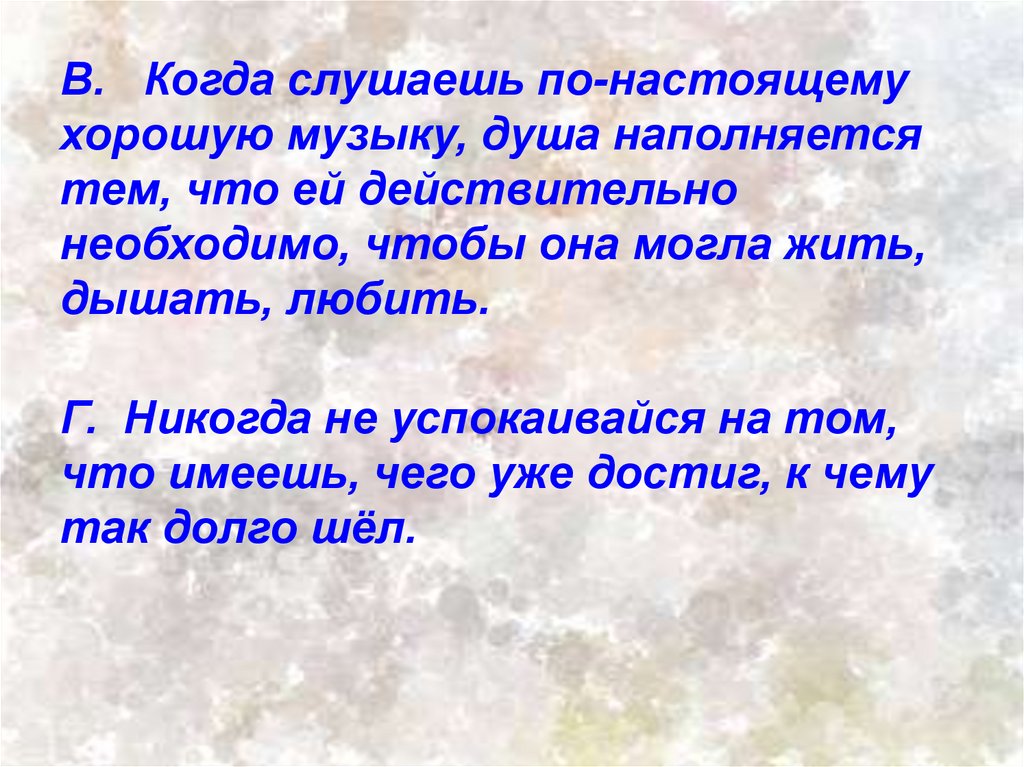 В. Когда слушаешь по-настоящемухорошую музыку, душа наполняется