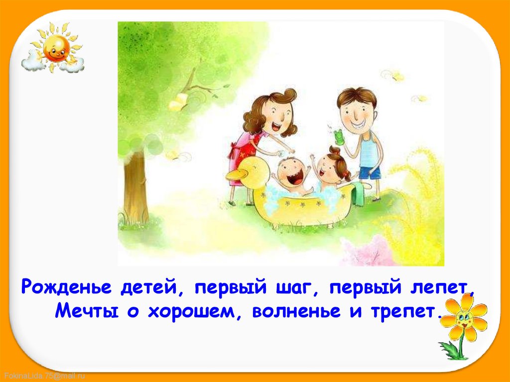 Рожденье детей, первый шаг, первый лепет,Мечты о хорошем, волненье и трепет.