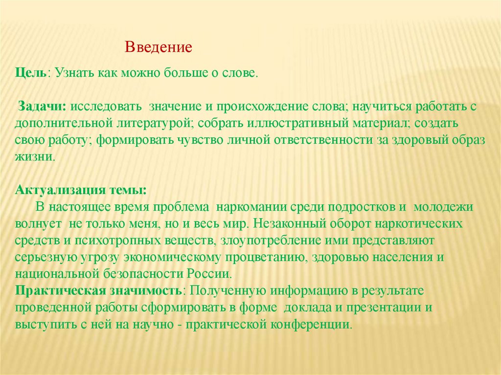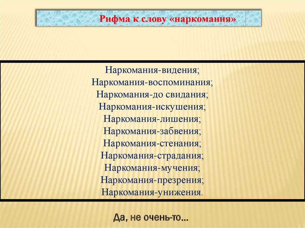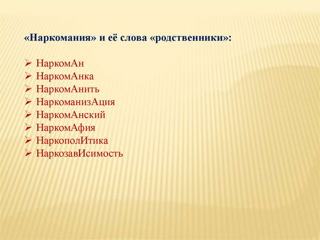 Слово «НАРКОМАНИЯ»«Единственная красота,