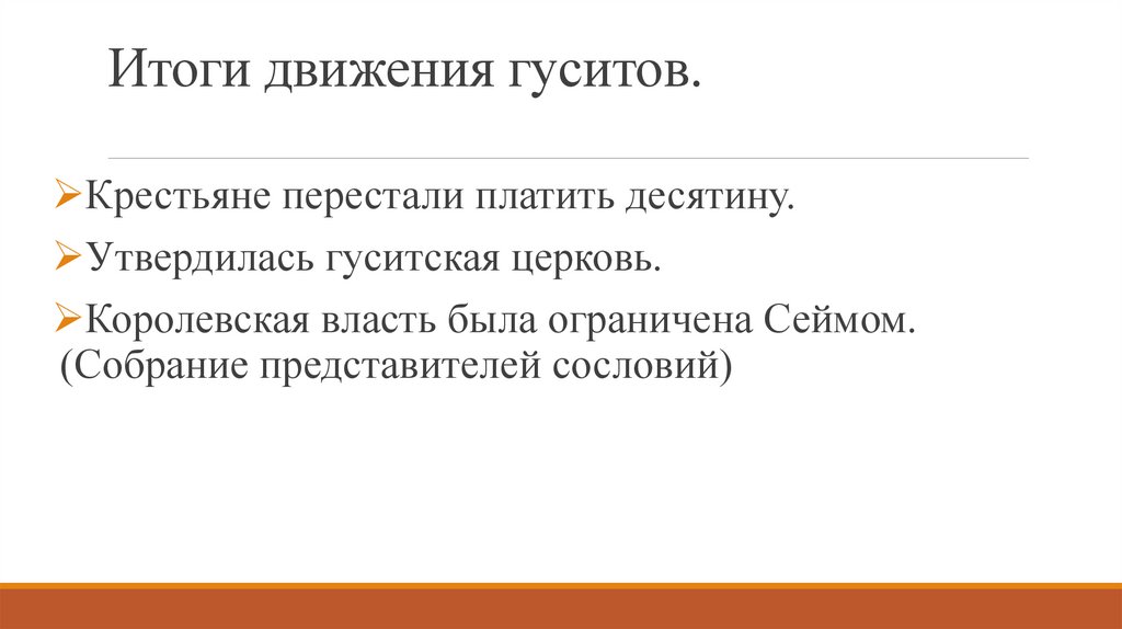 Итоги движения гуситов.Крестьяне перестали платить десятину.