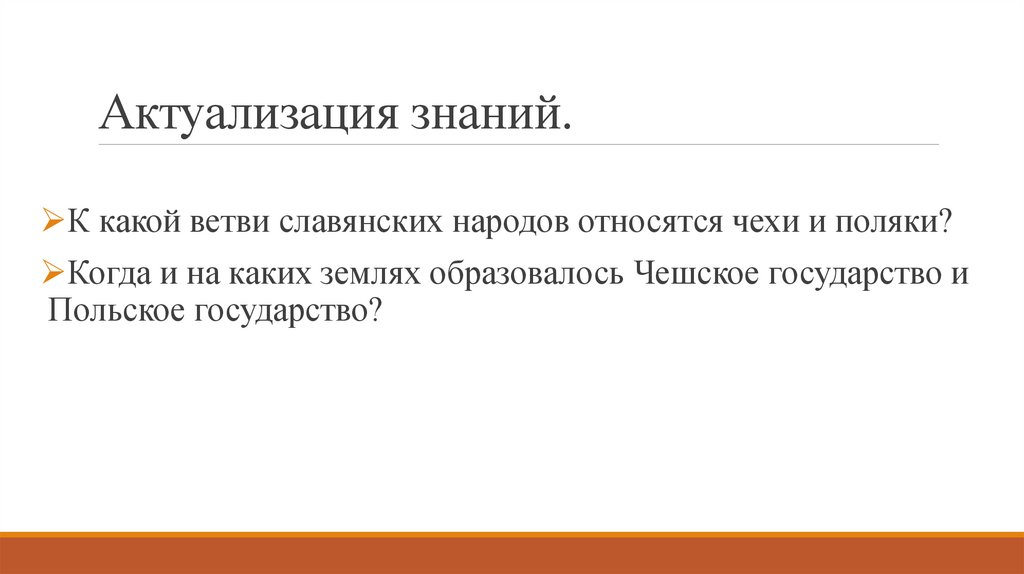 Актуализация знаний.К какой ветви славянских народов относятся чехи и поляки?