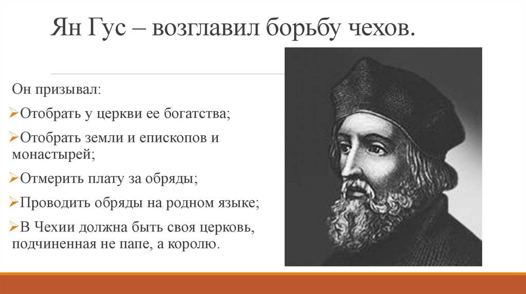 Ян Гус – возглавил борьбу чехов.Он призывал: