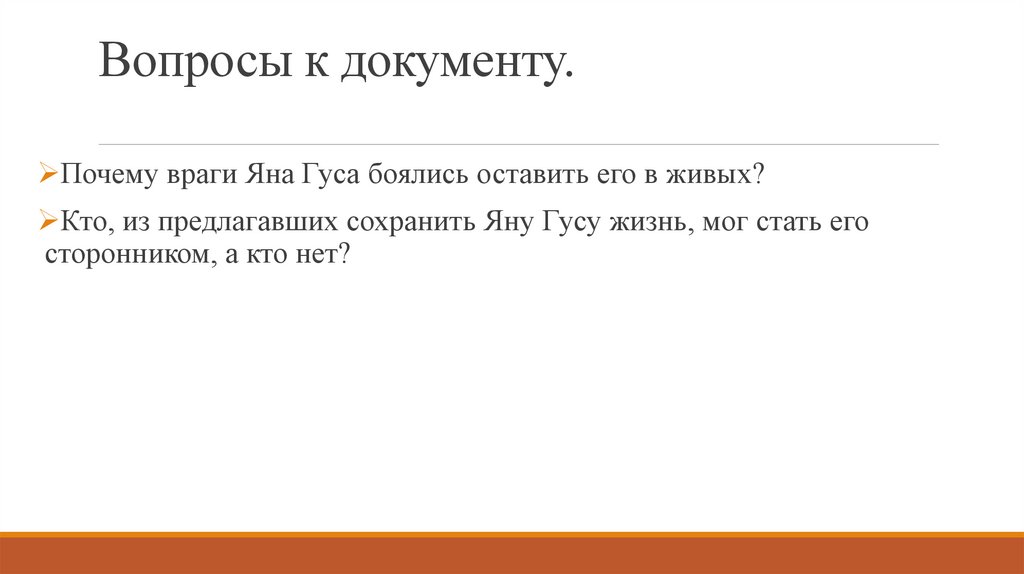 Вопросы к документу.Почему враги Яна Гуса боялись оставить его в живых?