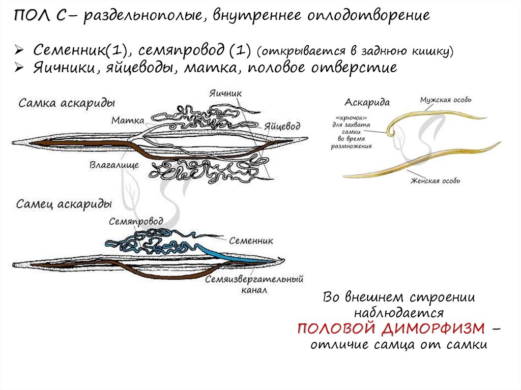 ПОЛ С– раздельнополые, внутреннее оплодотворениеСеменник(1), семяпровод (1) (открывается в заднюю
