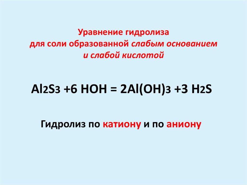 Как записать уравнение гидролизадля соли образованной слабым основанием