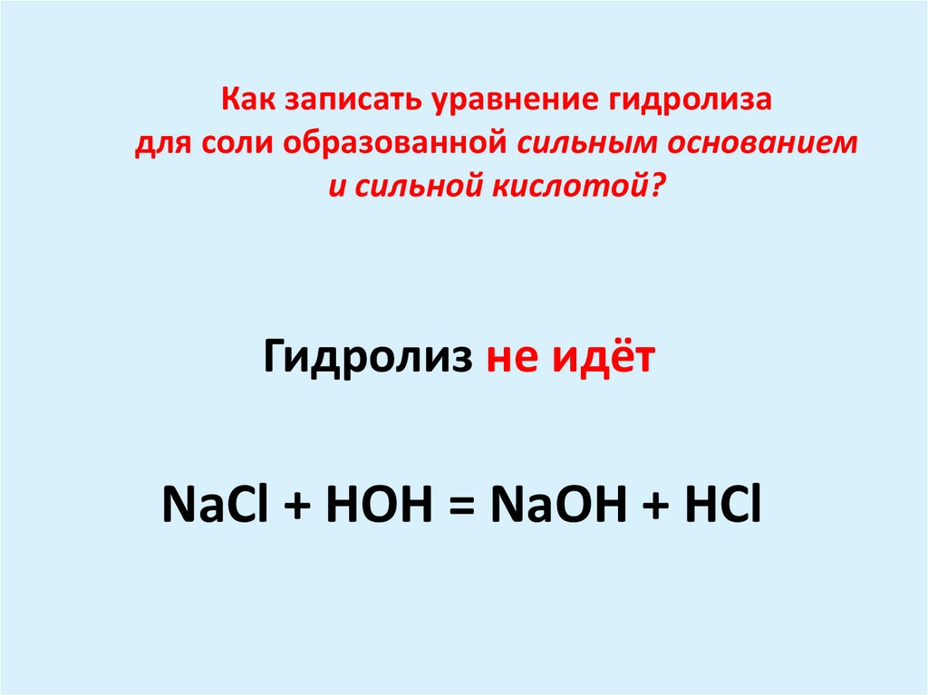 Как записать уравнение гидролизадля соли образованной сильным основанием