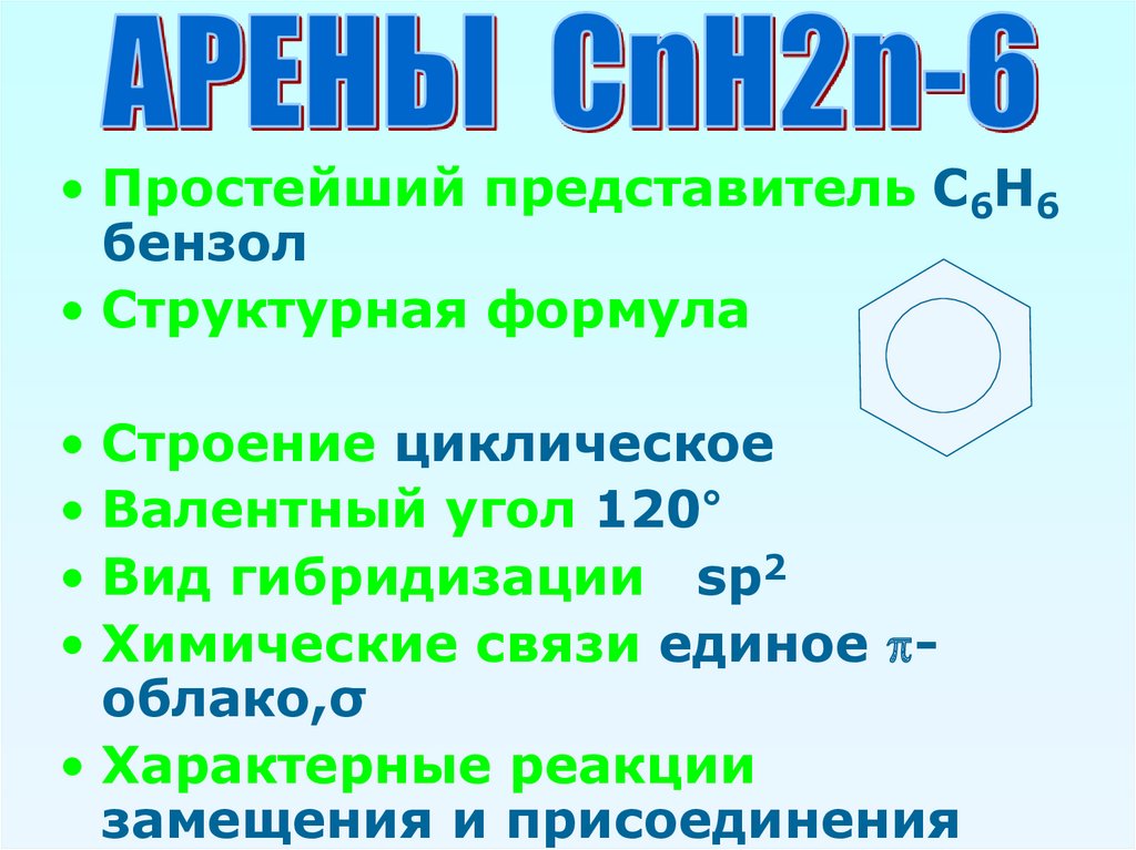 • Простейший представитель С6Н6бензол